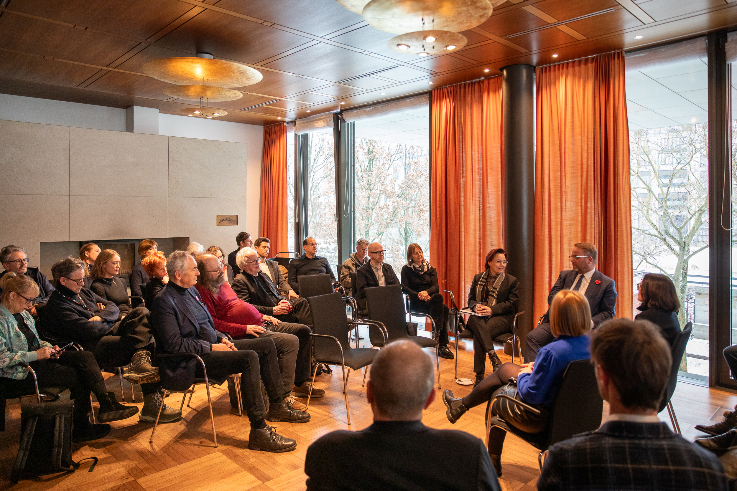 Dem Empfang voraus ging eine Diskussionsrunde zur Zukunft der Filmförderung, bei der Vertreterinnen und Vertreter der Filmbranche zu Wort kamen. „Dieser Austausch ist für mich eine der wichtigsten Berlinale-Veranstaltungen und macht die Besonderheit des Empfangs und des Film- und Medienstandorts aus“, ergänzt Kunst- und Kulturminister Timon Gremmels. Er begrüßte die aktuelle Einigung der Bundesregierung, Streamingdienste gesetzlich zu verpflichten, acht Prozent ihres Nettoumsatzes in Deutschland in die hiesige Filmproduktion und Filmförderung zu investieren. „Mit der Einigung hat die Koalition im Bund wichtige Weichen gestellt, damit die Filmproduktion in Deutschland im internationalen Wettbewerb zukünftig konkurrenzfähig sein kann“, so Gremmels.